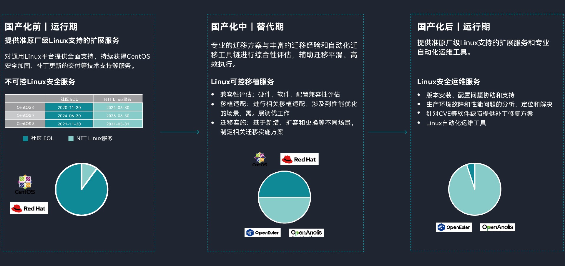 为应对CentOS停服,相关政府部门要求按照“能替尽替”的原则,中国移动启动在保证业务稳定及系统安全的前提下,积极稳妥推进非自主可控服务器操作系统的适配迁移工作,网思科技为中国移动云提供专业的国产化操作系统BC Linux迁移替代工作。
